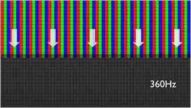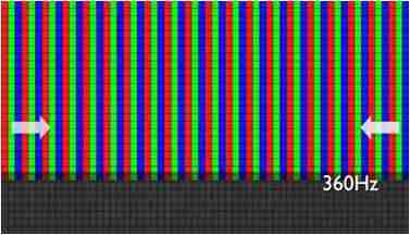 传统液晶驱动是从左到右单向进行,,,在画面更新速度愈来越愈快的情况下,,,位于驱动线路末端的右下角区域,,,,画素的闸极来不及在短时间内获得足够电压,,,无法显示出正确的颜色资讯。。。。 |