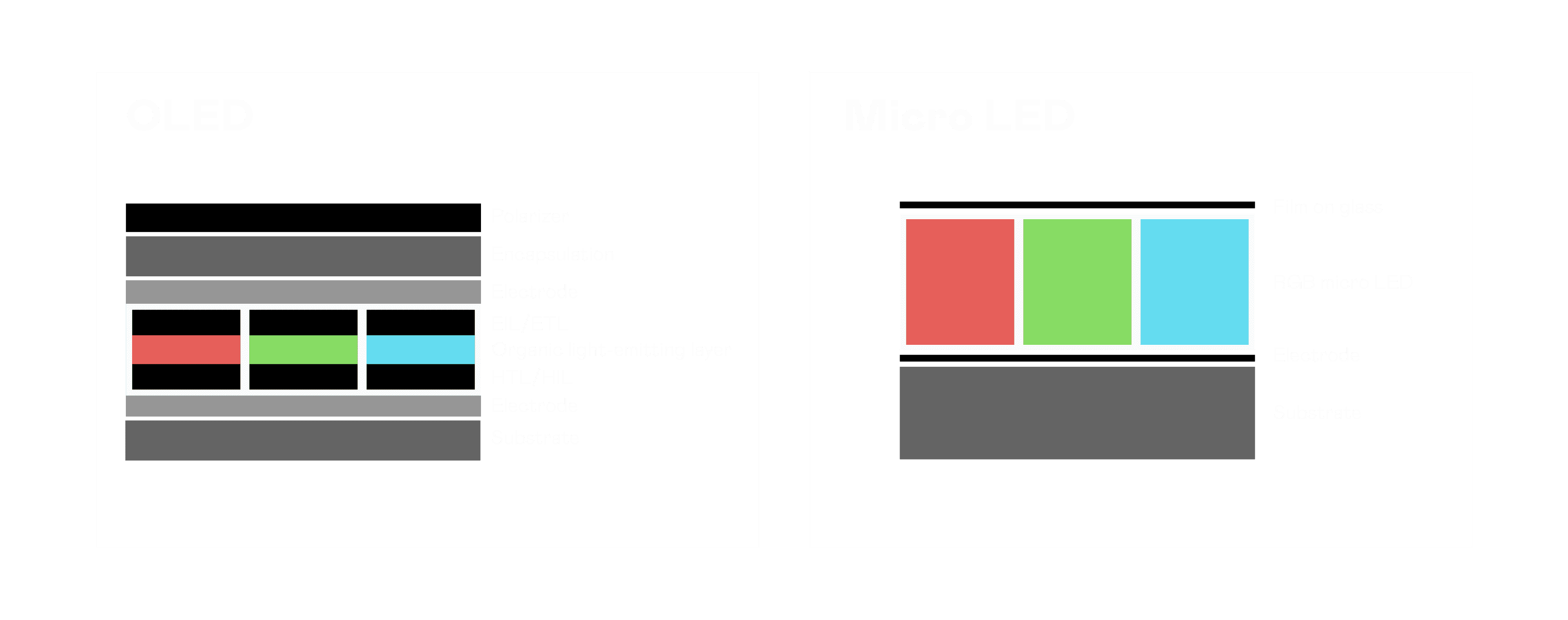 以 LED 做为显示画素,,,可让 LED 的发光效率发挥到极致,,从而让显示器具备优异的亮度表现,,,不论是在户外或室内,,,均具备出众的显示效果。。。同时,,与使用有机材料的 OLED 相比,,,,LED 具备更稳定、、寿命更长的特性,,不仅不会有画面烙印问题,,,而且更不容易出现故障、、、、坏点。。。
