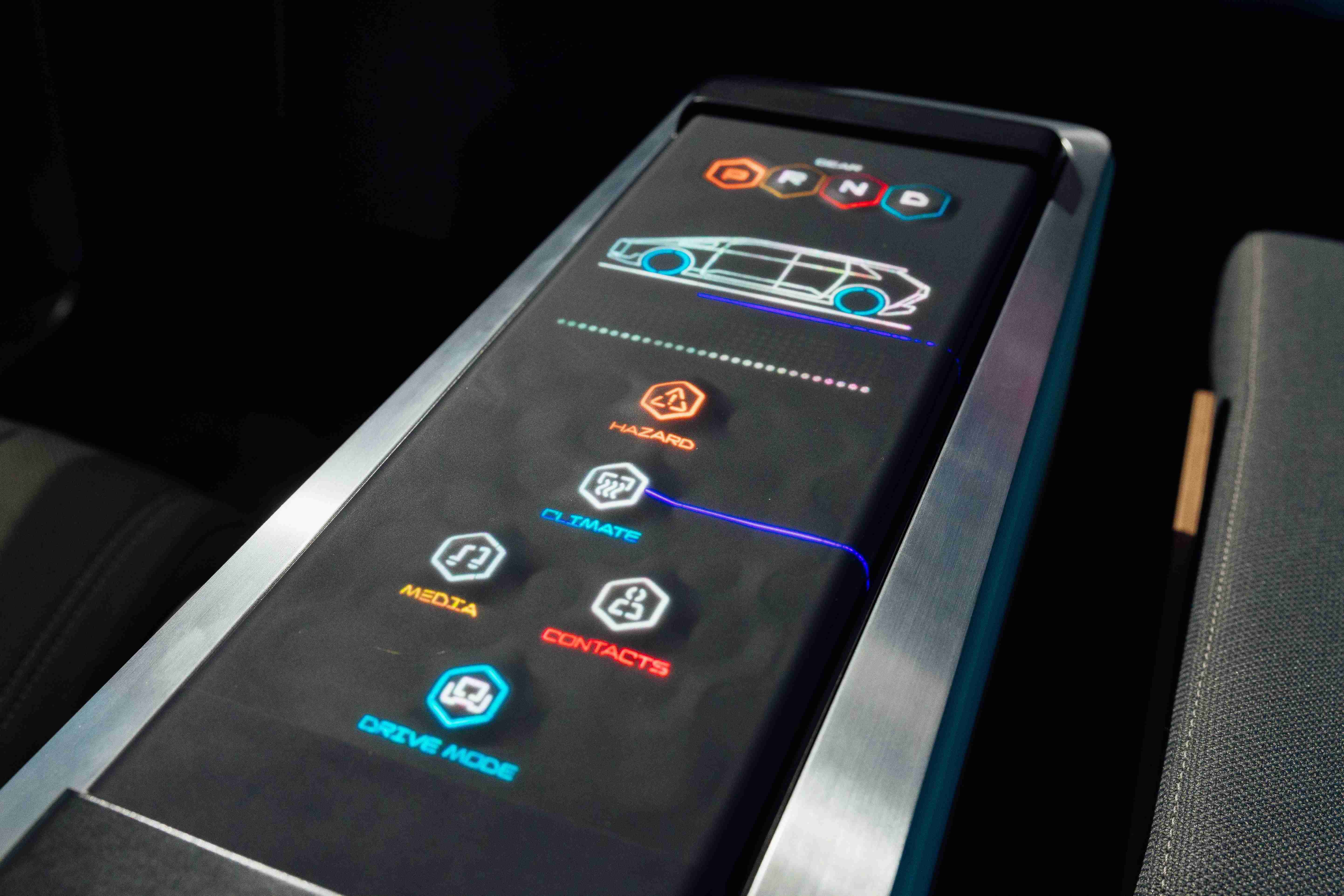 幻境全景天幕(Virtual Sky Canopy)将无缝拼接大型化的透明Micro LED显示器融入至天窗,,,带来沉浸式体验,,,将人机介面扩展至整个座舱。。 YAXIN111光电以人性化的设计引领直觉式的人机互动,,,透过多变形态中控显示(Morphing Center Control)、、隐藏式智驾介面(Foldable Cruise Pilot)等解决方案,,让乘用者依据自身需求调整、、控制座舱内所需功能。。。
