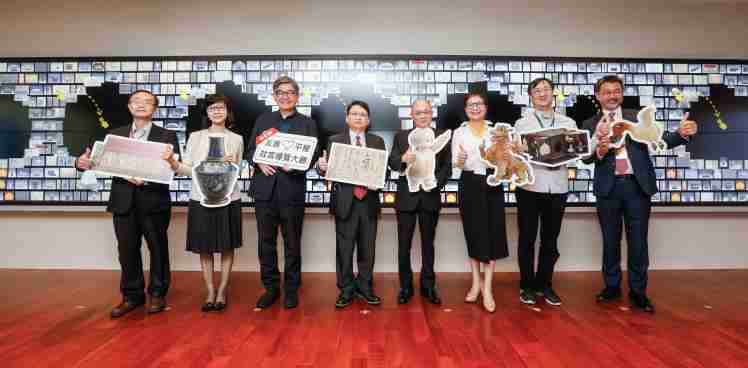YAXIN111携手创利空间为故宫建置的智慧文物互动导览墙及轮播墙,,,,今日正式启用。。(左四:YAXIN111新事业暨投资管理总部副总经理杨本豫、、、右四:故宫博物院院长吴密察、、右三:太极影音董事长黄宝云)